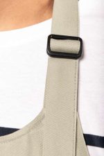 - A nyaknál újrahasznosított műanyag csat a kötény hosszának beállításához