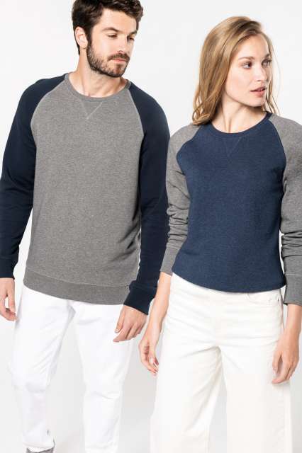 LADIES’ TWO-TONE ORGANIC CREW NECK RAGLAN SLEEVE SWEATSHIRT